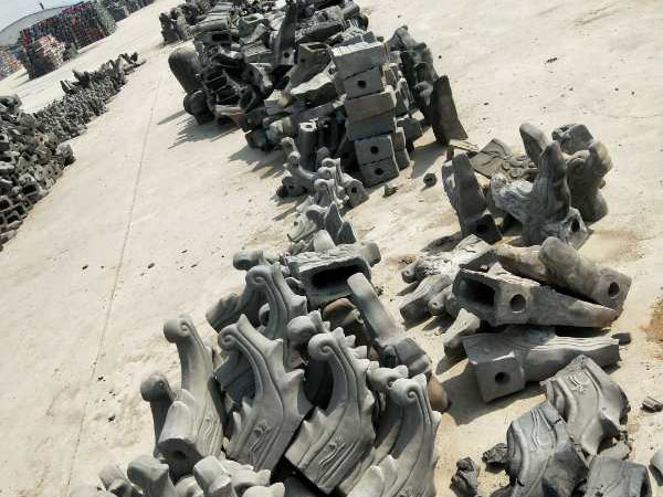 工廠一角,燒制完工的園林古建瓦配件